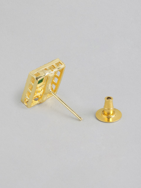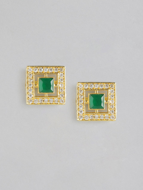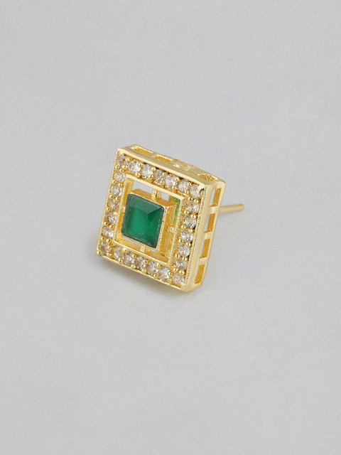 Green and gold-toned contemporary studs, gold-plated, has cubic zirconia