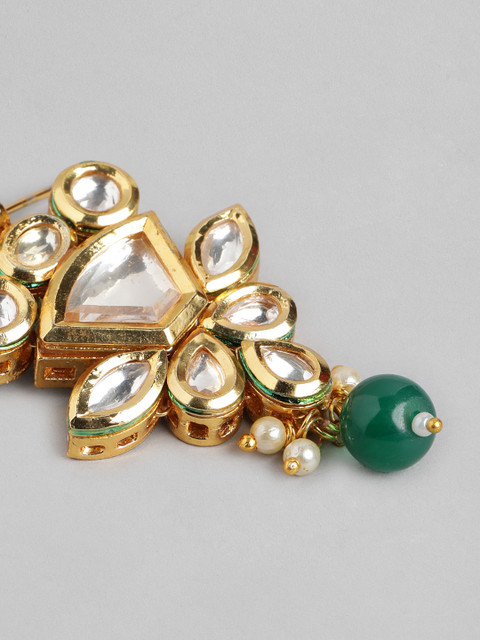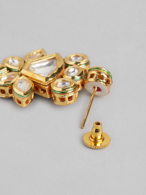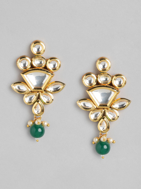 Gold-toned and green contemporary drop earrings, gold-plated, has kundan