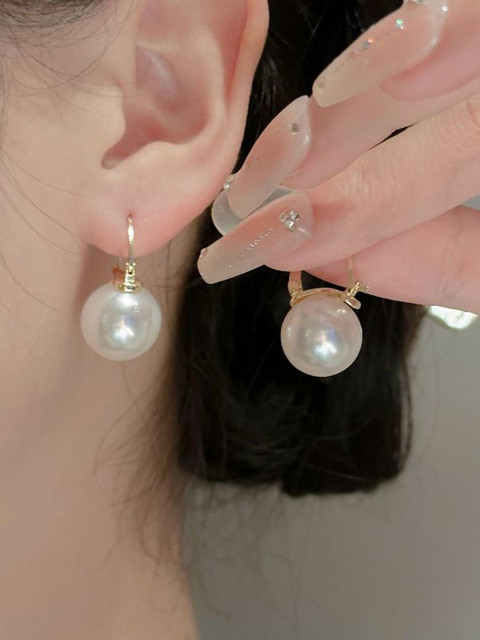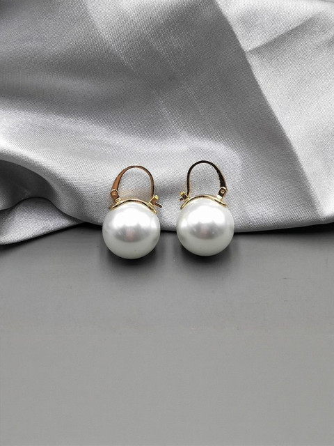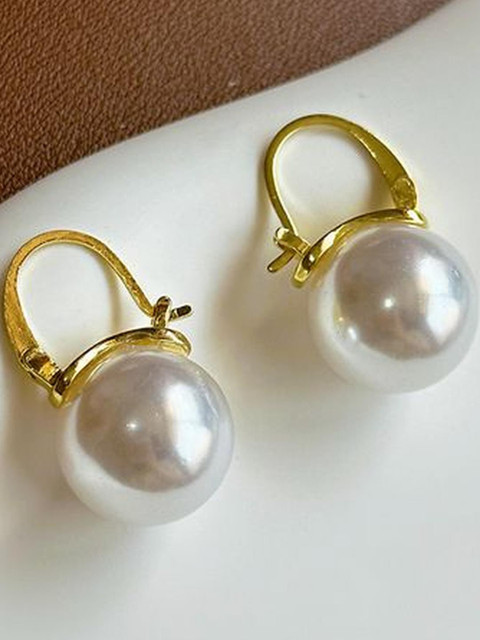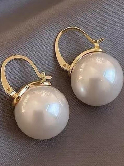 Gold-toned and white spherical hoop earrings,has pearls beaded details