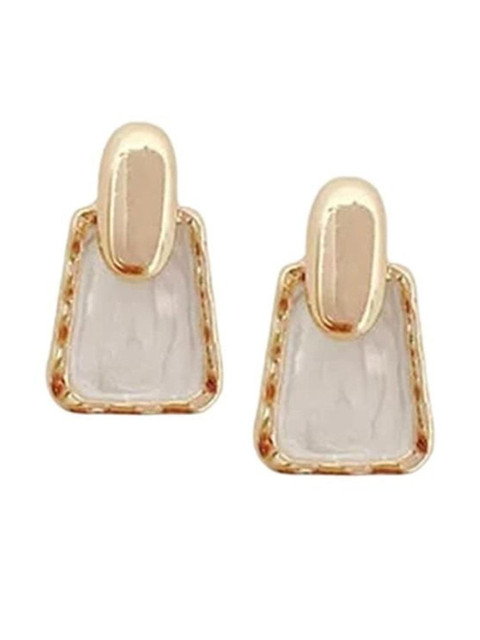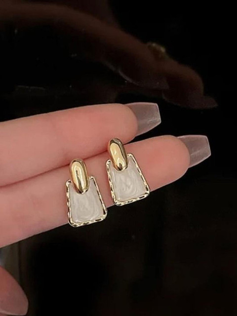 Gold-toned, white geometric studs, gold-plated, has pearls studded details