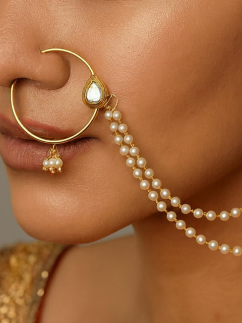 Gold-plated pearls Studded ring clip-on closure