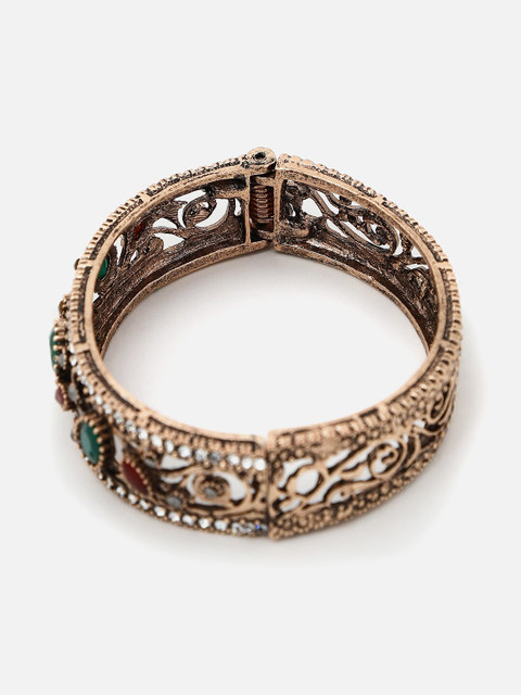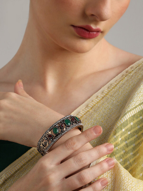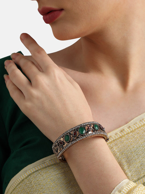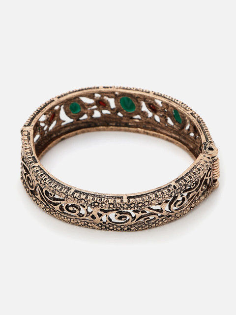 I’m thrilled with my gold-toned green brass bracelet from Myntra! It’s beautifully designed, with vibrant green accents that add a touch of elegance to any outfit. The quality is excellent, and I’ve received so many compliments on it. A must-have accessory!