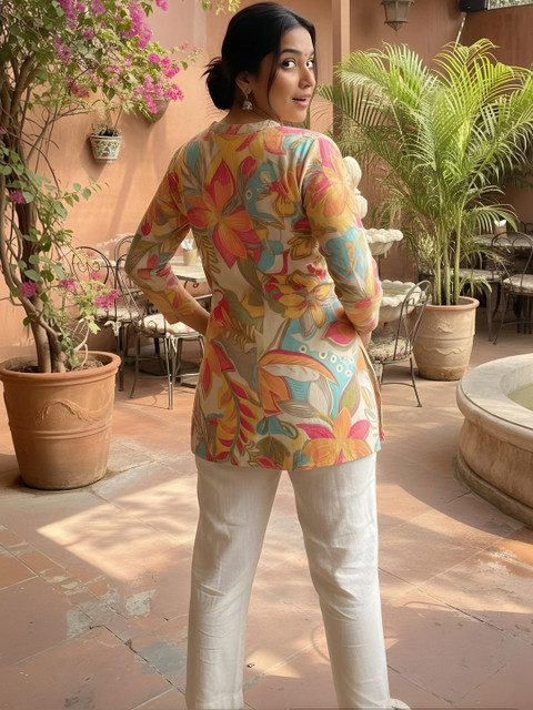 Product quality is not as seen in displayed image. Also the kurti is lill long..it is touching my knees