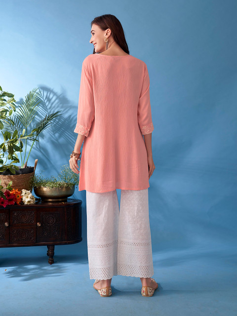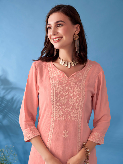 6 reviews for Anouk Pink Embroidered V-Neck A-Line Kurta