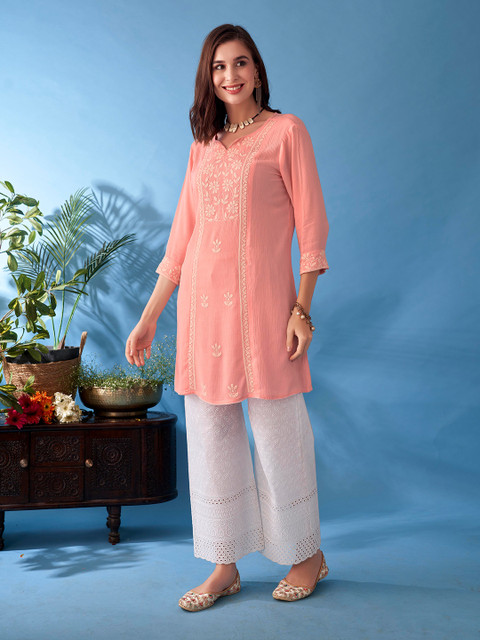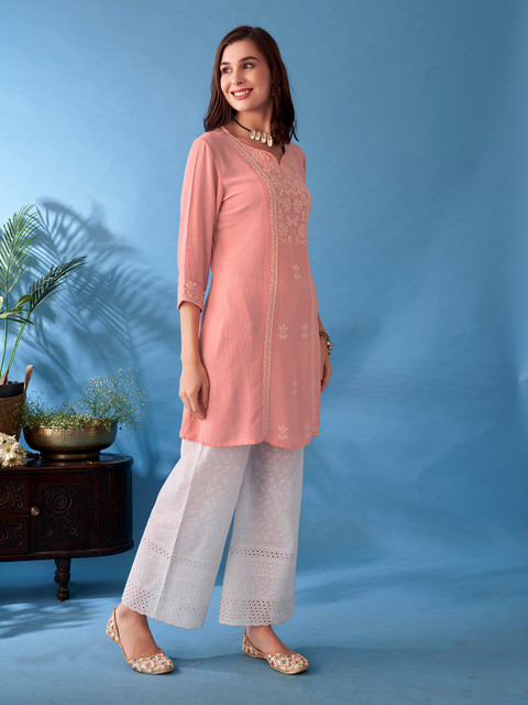 This kurti is so pretty and cloth is good quality, it will never fade and while wearing it wil be comfortable you can pair with legging, jeans and pants