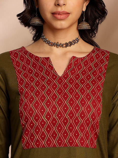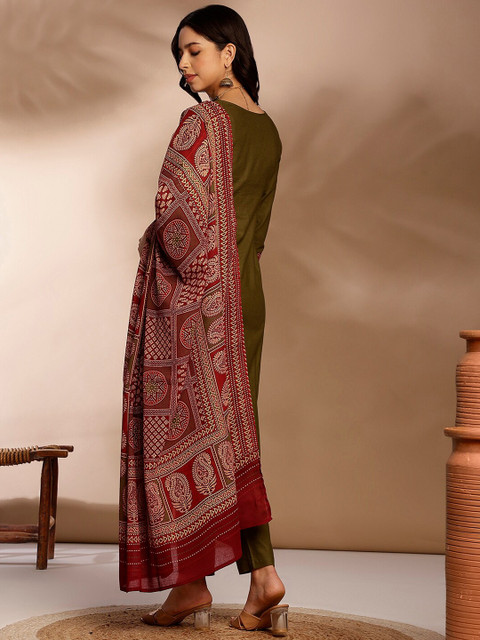 Olive green printed Kurta with Trousers with dupatta