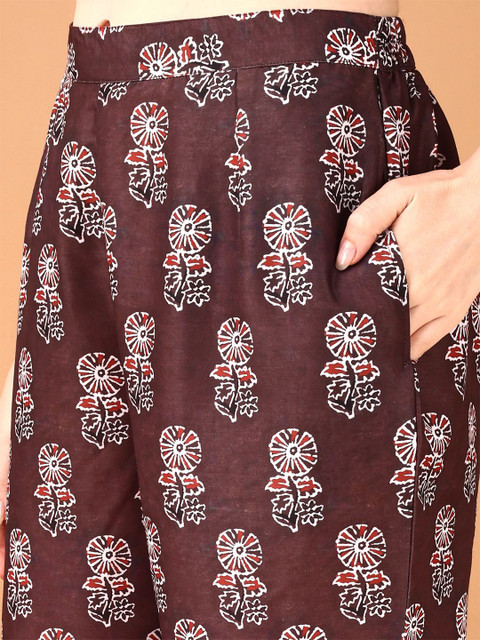 Maroon & white printed mid-rise palazzo, has slip-on closure