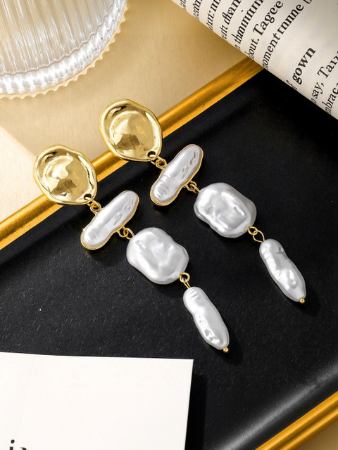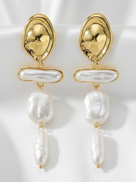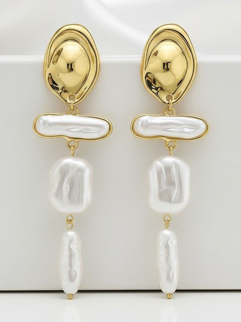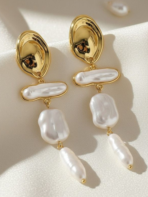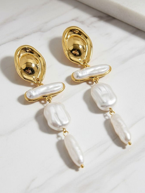 Gold-toned quirky drop earrings, gold-plated, has pearls
