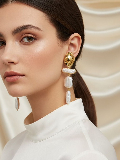 Wipe your jewellery with a soft cloth after every use and always store it in a flat box to prevent scratches. Keep sprays, perfumes, and water away from your earrings. Do not soak them in water. Clean gently with a soft brush dipped in mild jewellery cleaning solution. Made from anti-tarnish Alloy Steel with moti gold plating and Korean pearl finish