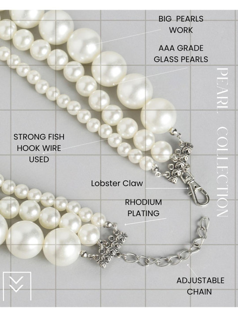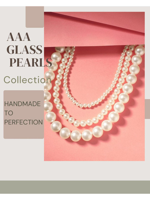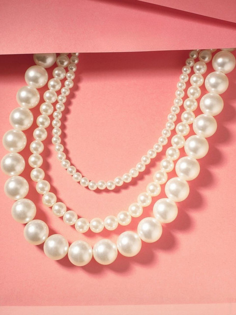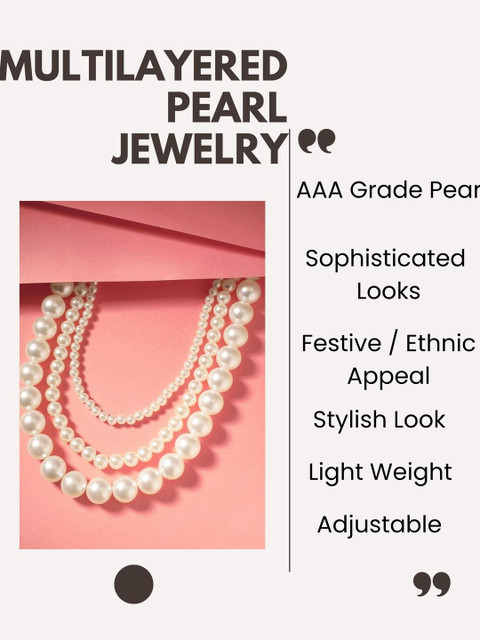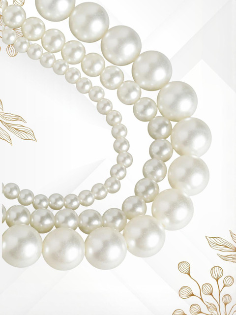 Elevate your elegance with this stunning three-layered white pearl necklace Mala Crafted with lustrous faux pearls in graduating sizes, this statement necklace exudes timeless sophistication and charm. The adjustable chain closure ensures a perfect fit for any neckline . Whether for weddings, festive occasions, parties, or gifting, this versatile jewelry set adds a touch of grace to both ethnic and western attire.