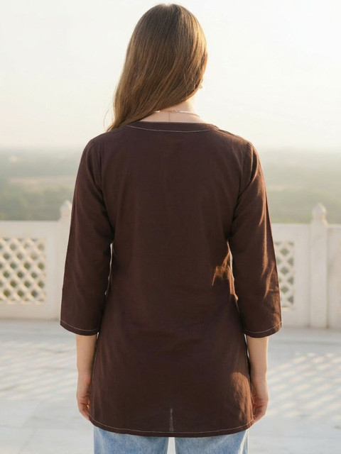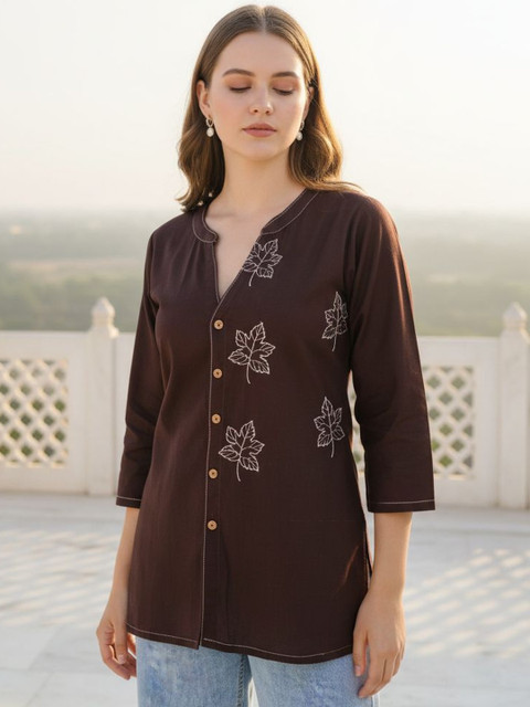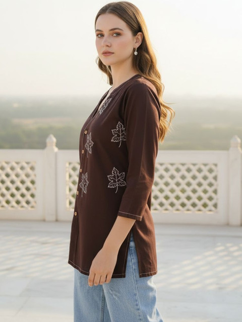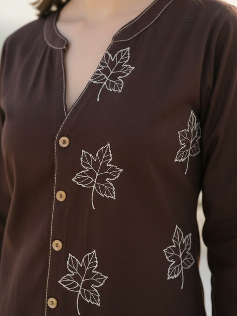 Anouk Rustic Botanical Embroidered V-Neck Pure Cotton Kurti