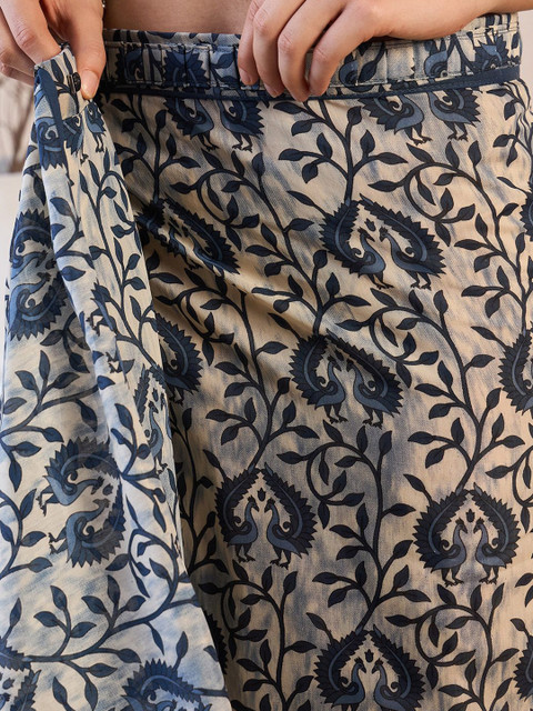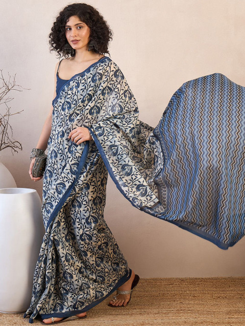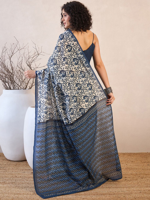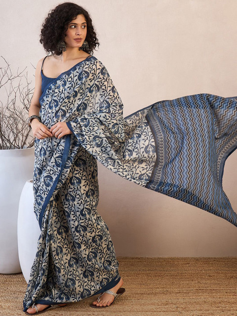 - Off white and blue dabu saree