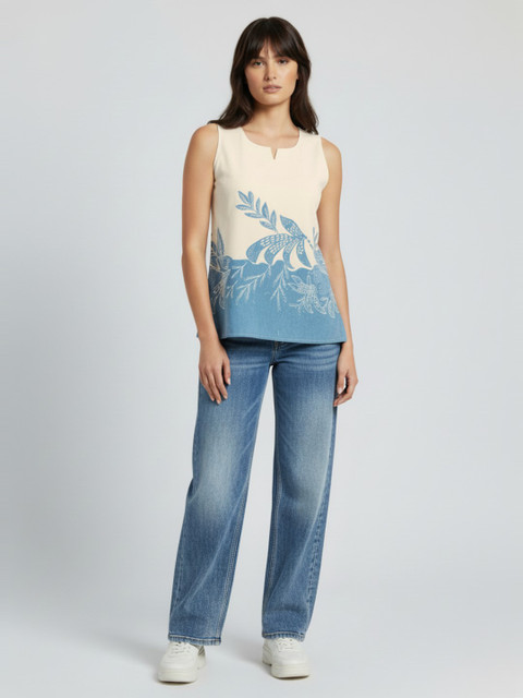 Loved the look of this kurti! The white and blue combo feels very fresh, and the shoulder straps make it look a bit trendy. Fit is clean and comfy — easy to style for a casual day out.