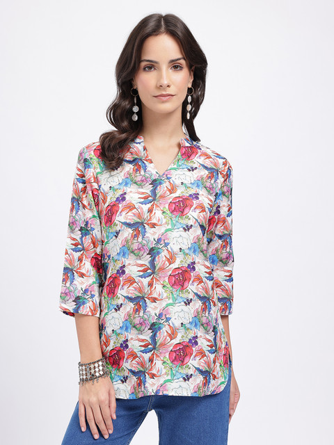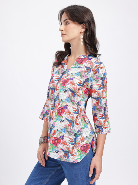 Anouk Rustic Floral Print Mandarin Collar Straight Kurti