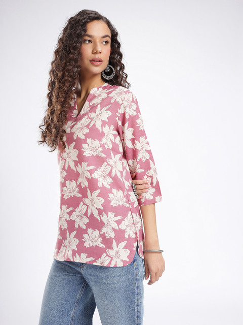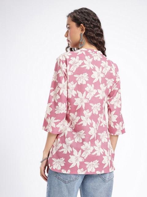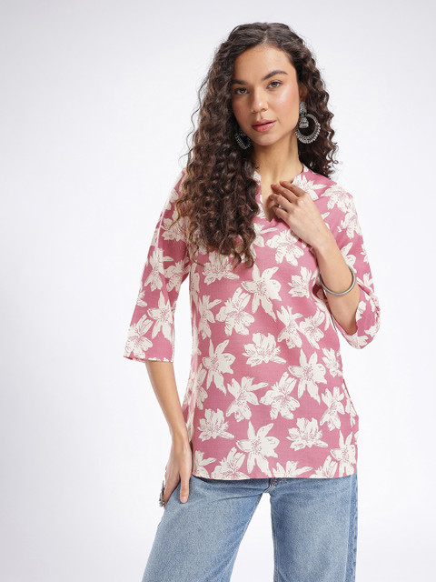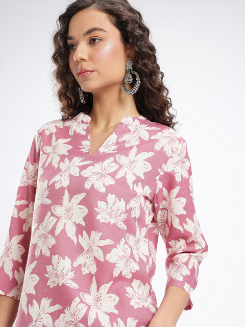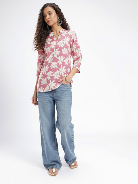Add a touch of natural beauty to your collection with this lovely kurti. Designed with a stunning floral print and a refined mandarin collar, it’s a versatile and fashionable choice for any casual or semi-formal occasion.