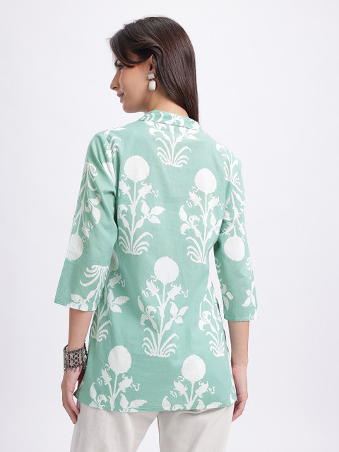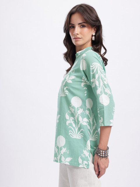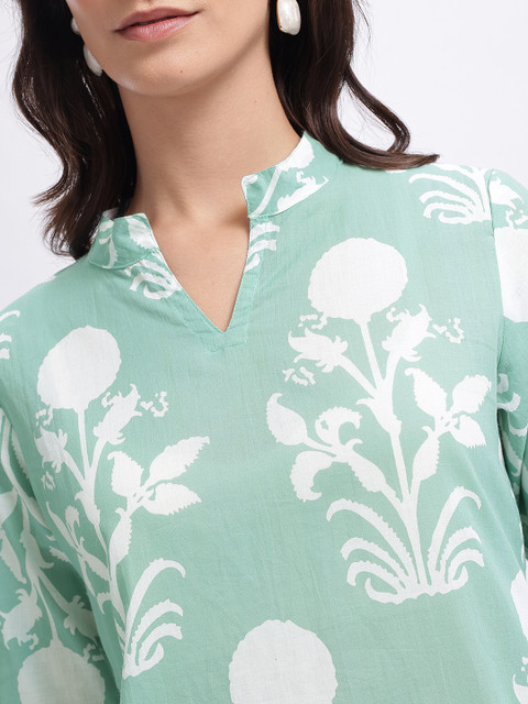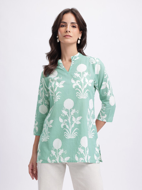 Contemporary print meets elegance–this straight kurti blends earthy charm with intricate detailing, making it a perfect pick for effortless style with a touch of tradition.