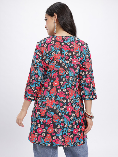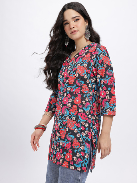 Contemporary print meets elegance–this straight kurti blends earthy charm with intricate detailing, making it a perfect pick for effortless style with a touch of tradition.