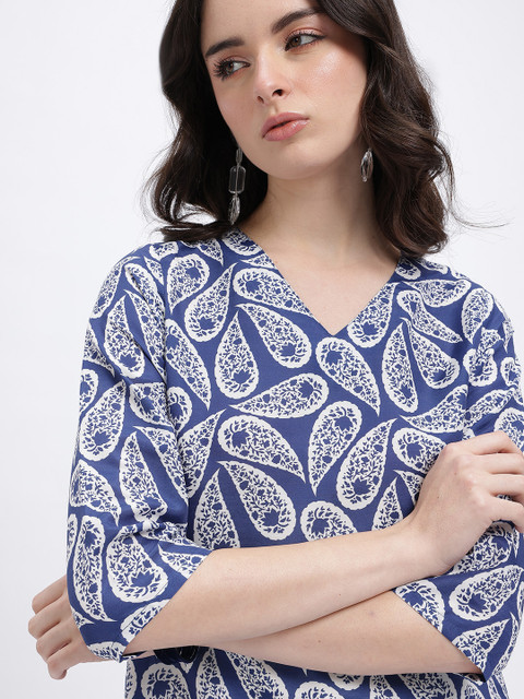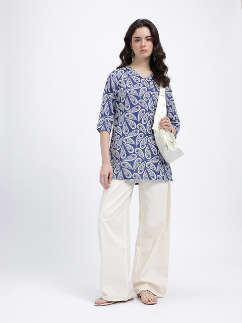 It’s the perfect fit for a low-key hangout or when you want to look put-together without even trying. Pair it with some wide-leg pants for a flowy, effortless look or skinny jeans to keep it sleek. This kurti is a whole aesthetic.