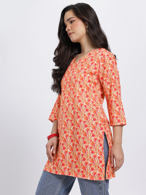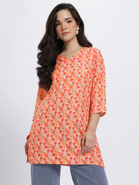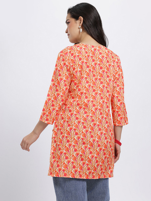 Contemporary print meets elegance–this straight kurti blends earthy charm with intricate detailing, making it a perfect pick for effortless style with a touch of tradition.