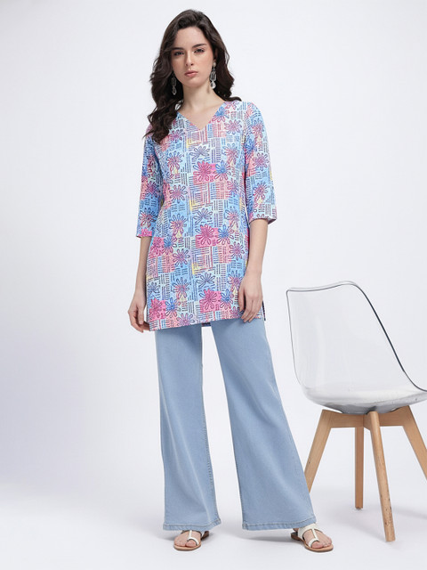 Anouk Rustic Floral Printed V-Neck Straight Kurti
