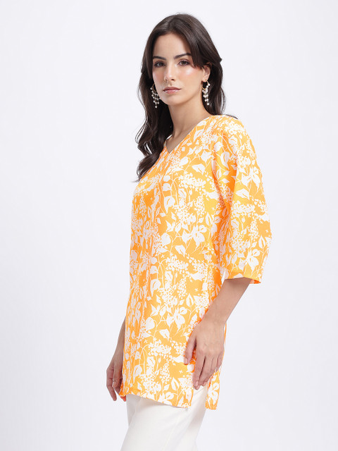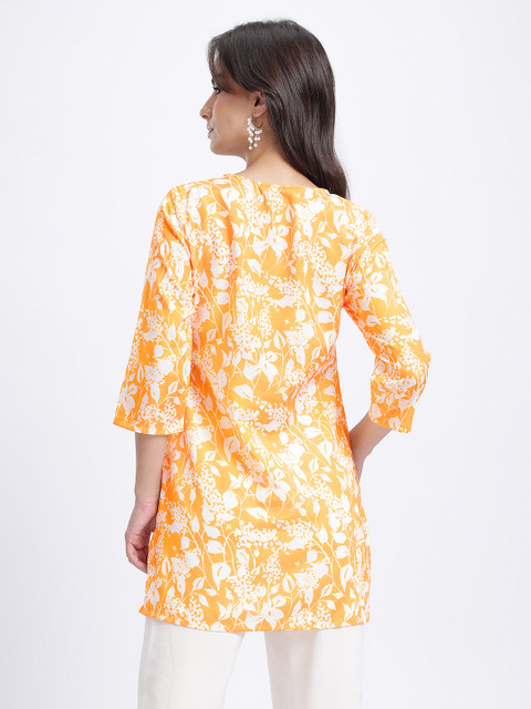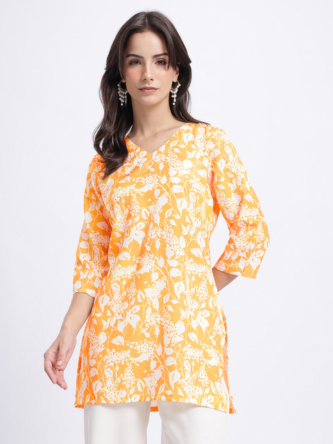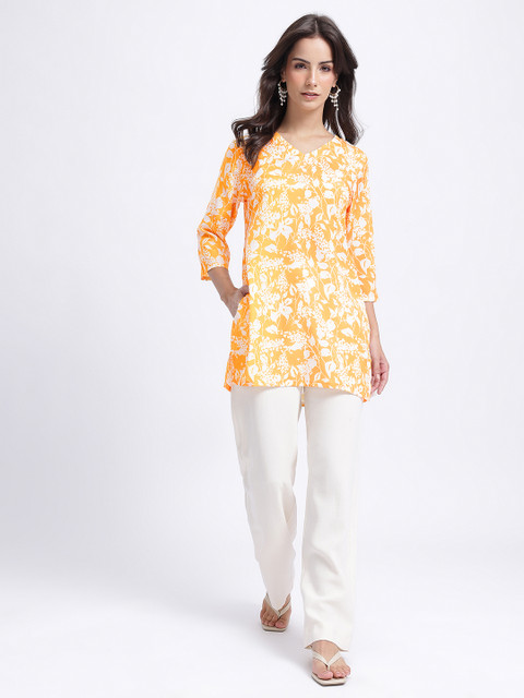 Contemporary print meets elegance–this straight kurti blends earthy charm with intricate detailing, making it a perfect pick for effortless style with a touch of tradition.