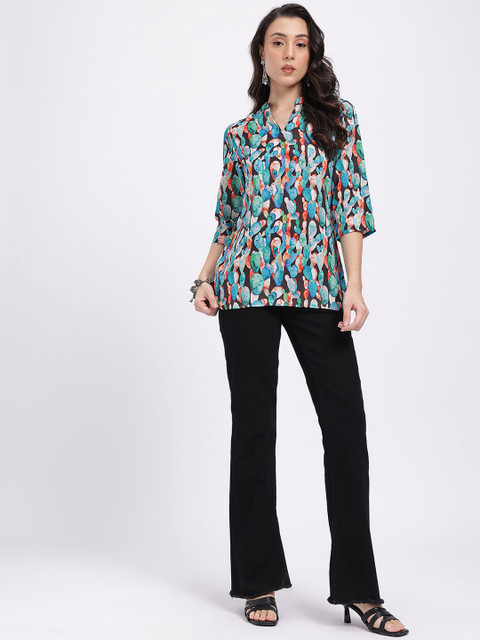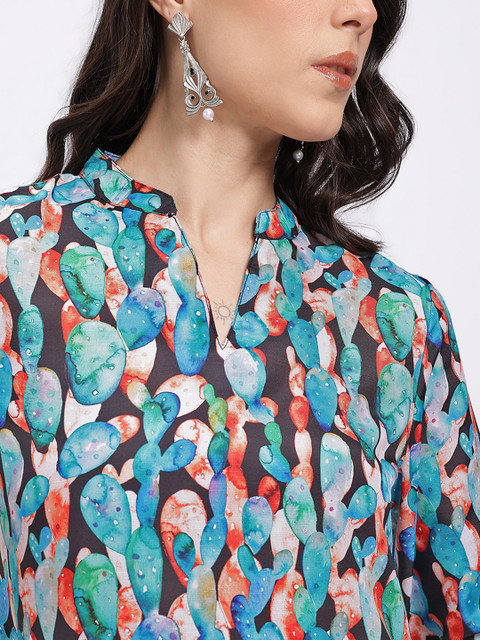 This kurti is a playful take on a classic, featuring elegant patterns and a soft, curved hemline that adds a modern twist to a comfy silhouette.