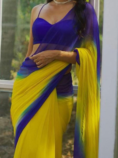 “I recently wore this stunning yellow-to-blue ombré saree, and it was an instant head-turner! The lightweight fabric drapes beautifully, making it perfect for festive occasions or elegant evening events. The color gradient adds a modern twist to a traditional silhouette. Paired it with minimal accessories and got so many compliments. Highly recommend for anyone looking to make a statement effortlessly! 💛💙
