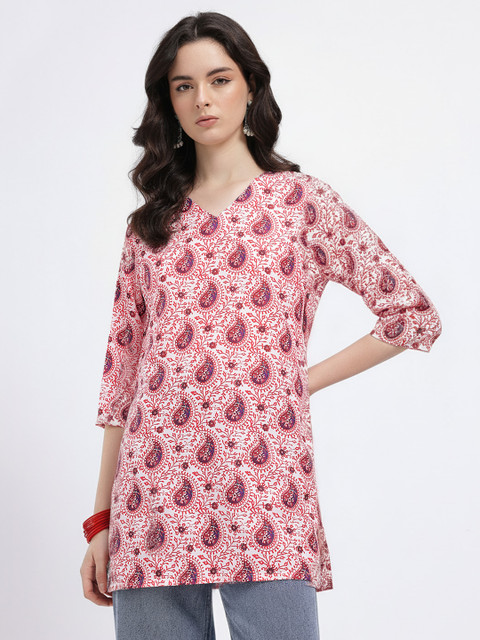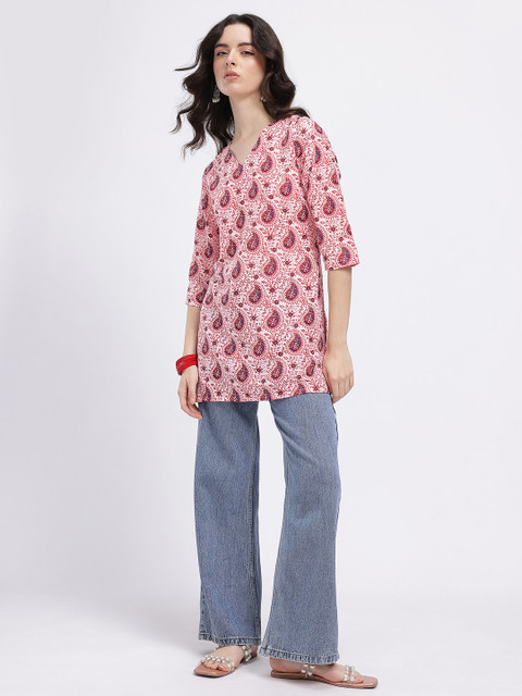 That paisley kurti is a whole vibe, def serving a cozy, retro fit.
