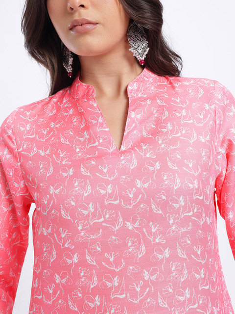 This kurti is a playful take on a classic, featuring elegant patterns and a soft, curved hemline that adds a modern twist to a comfy silhouette.