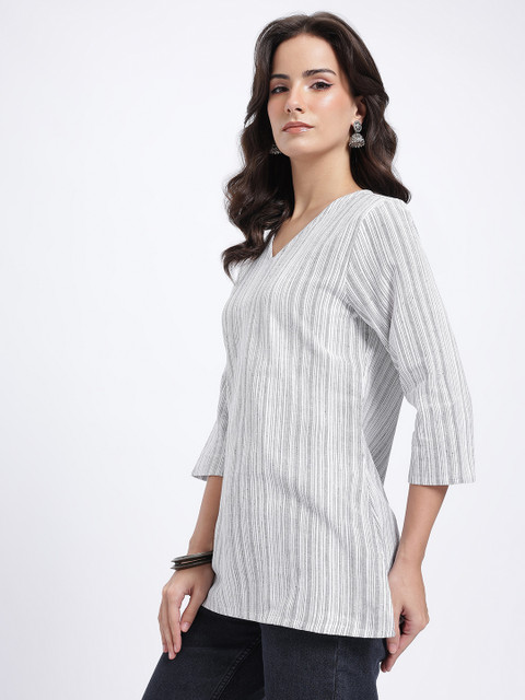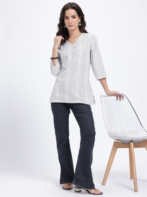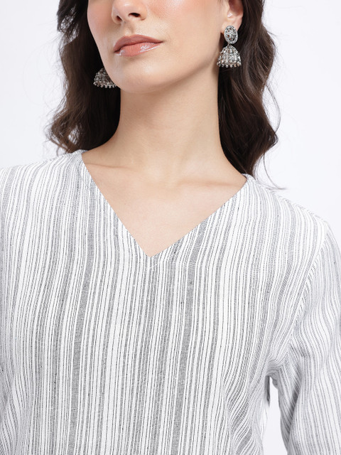 Anouk Rustic Striped V-Neck Straight Kurti