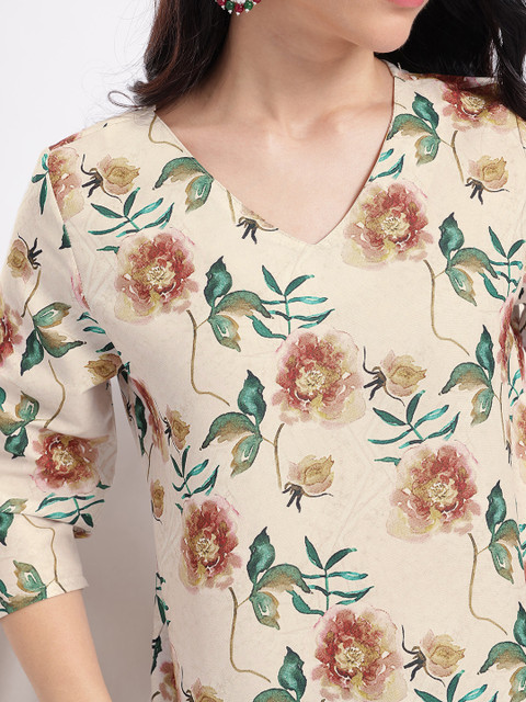 Step into timeless beauty with this floral print kurta, where vibrant blossoms and sophisticated design create an effortlessly charming look. It’s the ideal fusion of classic tradition and modern allure.