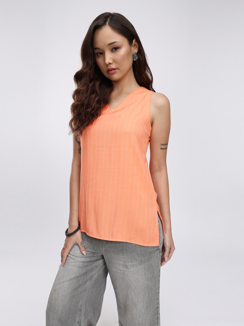 Anouk Rustic V-Neck Vertical Striped Straight Kurti