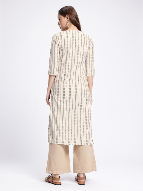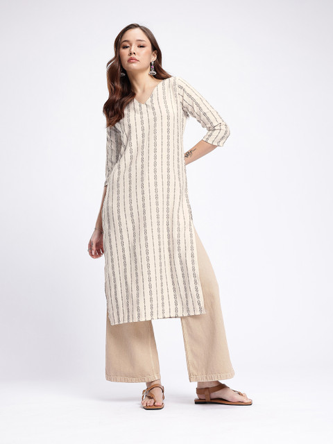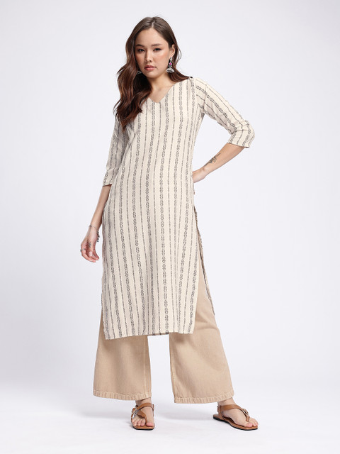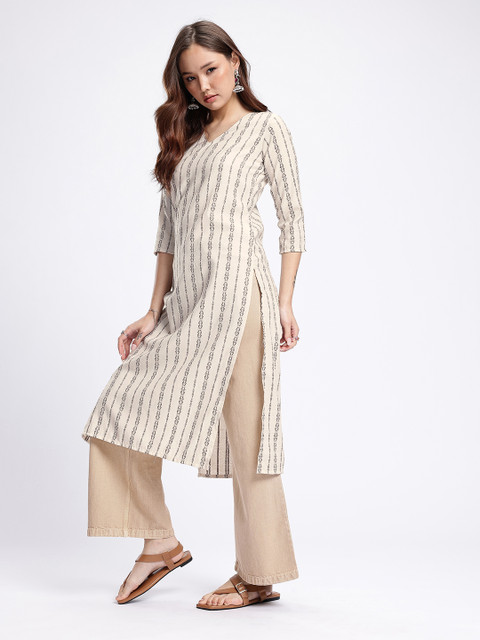 The standout element lies in its woven striped pattern, which brings a subtle texture and classic sophistication to the design. The V-Neck adds just the right touch of grace and ease to your wardrobe.