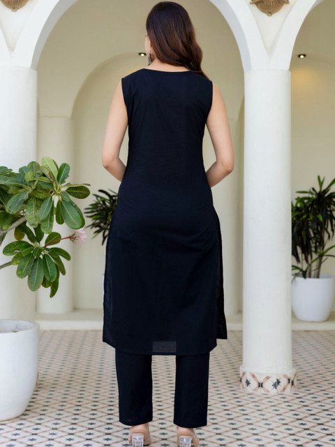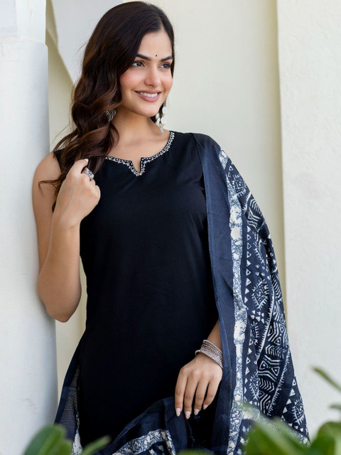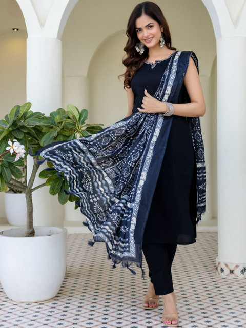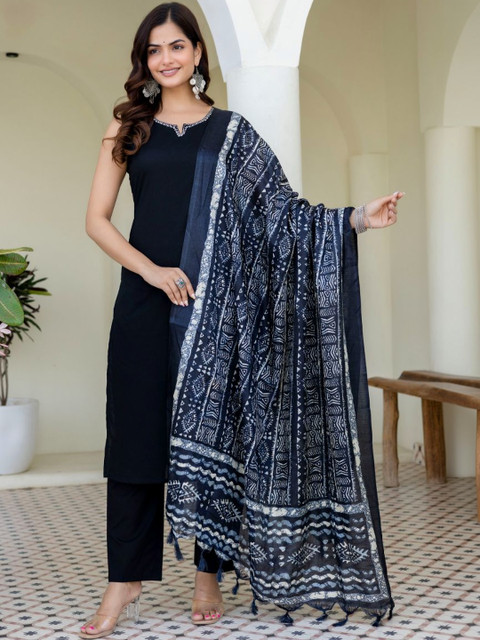 Black solid Kurta with Trousers with dupatta