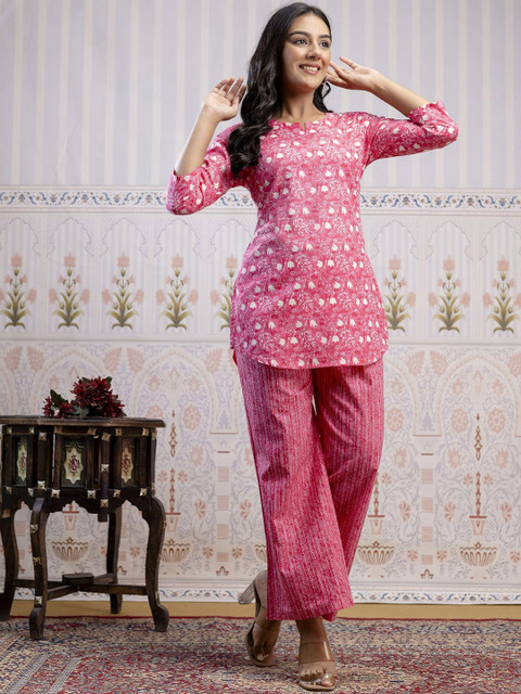 Anouk Rustic Women Floral Printed Regular Pure Cotton Kurta with Pyjamas