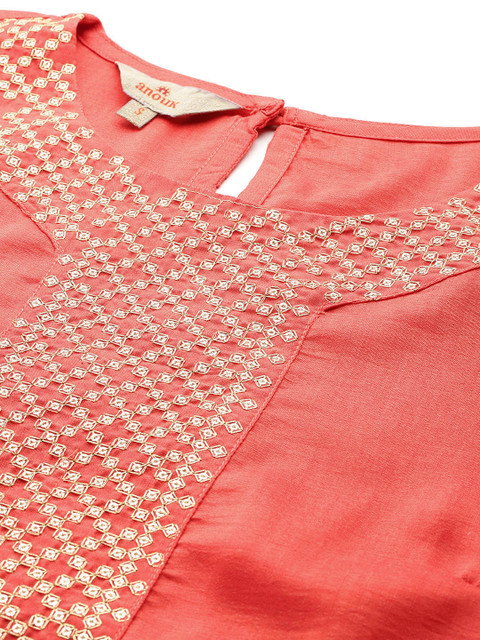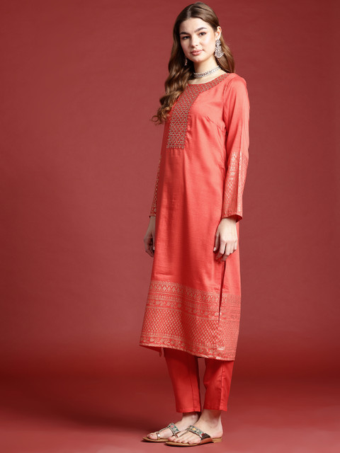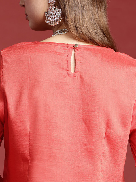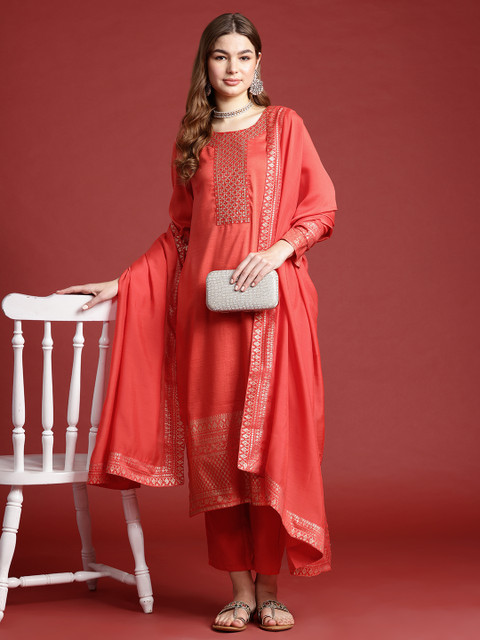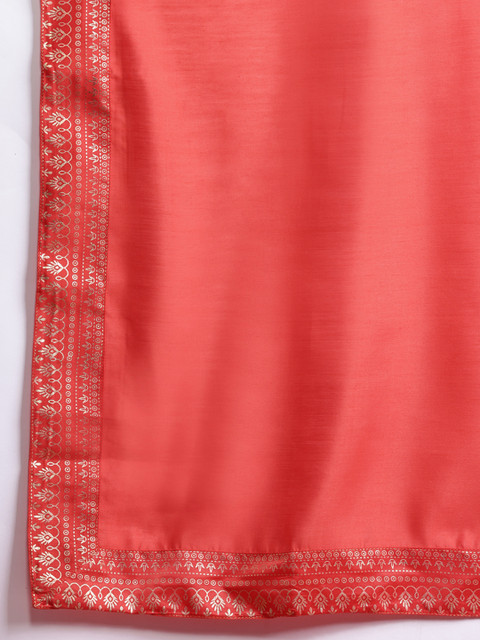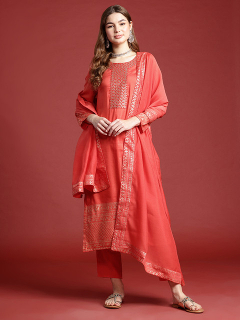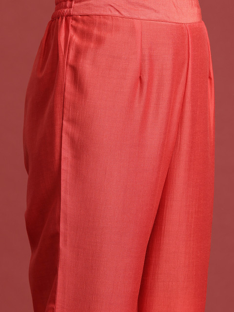 Coral embellished Kurta with Trousers and dupatta