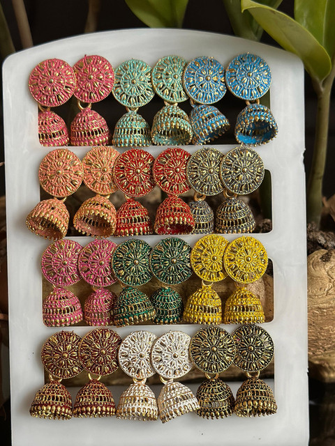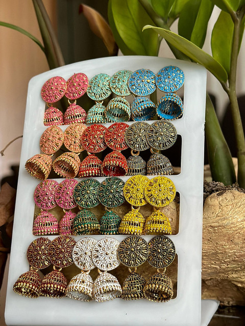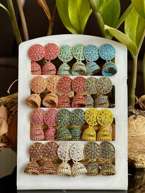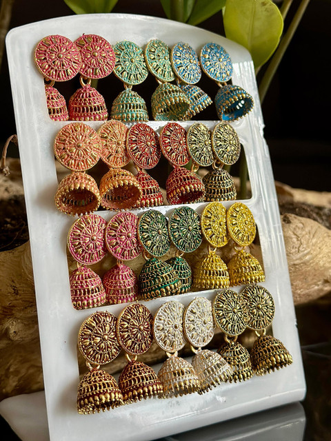 Gold-toned contemporary jhumkas, gold-plated, has artificial stones and beads