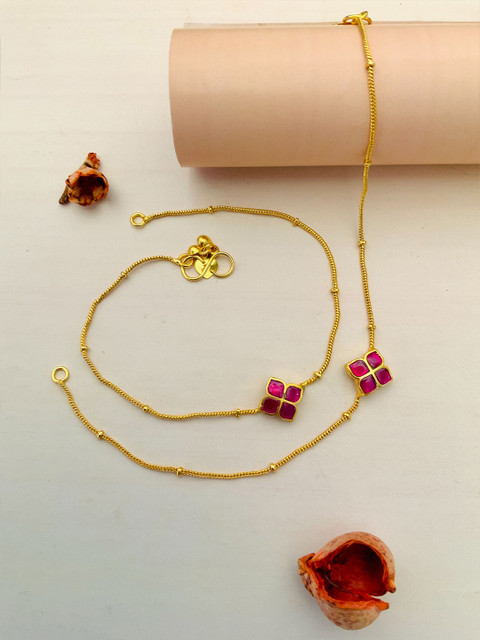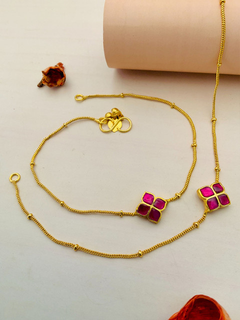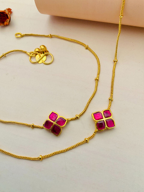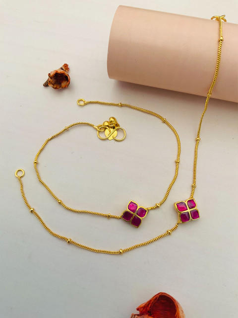 Set of 2 gold-plated kundan and beads studded anklet s-hook closure