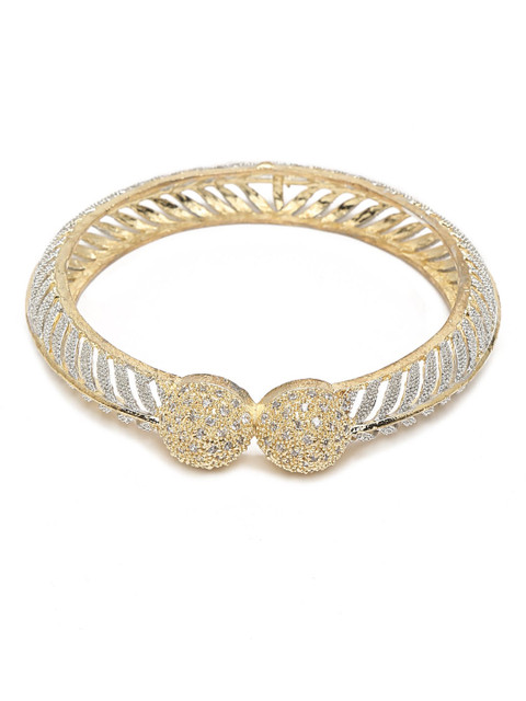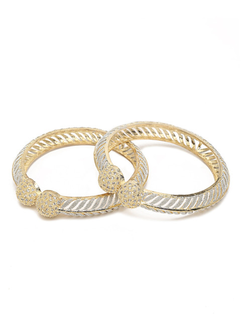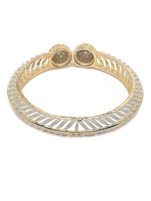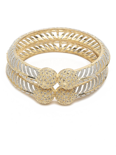 Set of 2 gold-plated bangles, each has white artificial stones-studded details