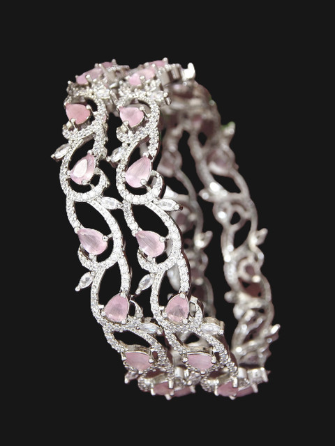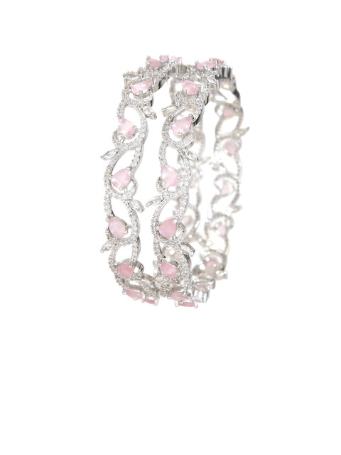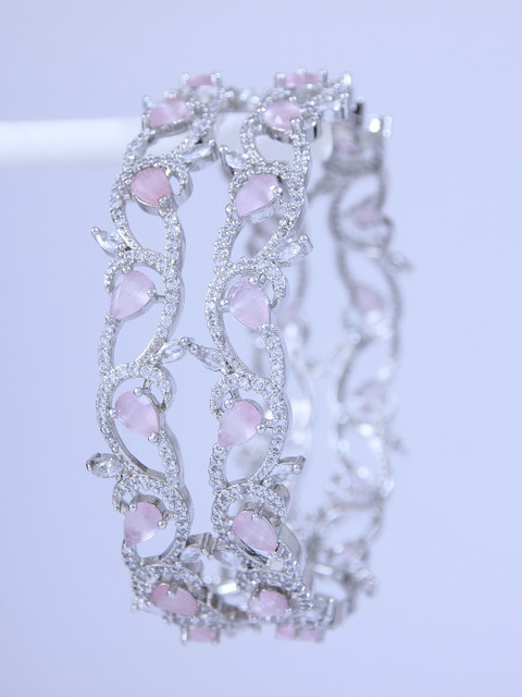 Set of two silver-plated bangles, each has white & pink american diamond-studded details, secured with slip-on closure