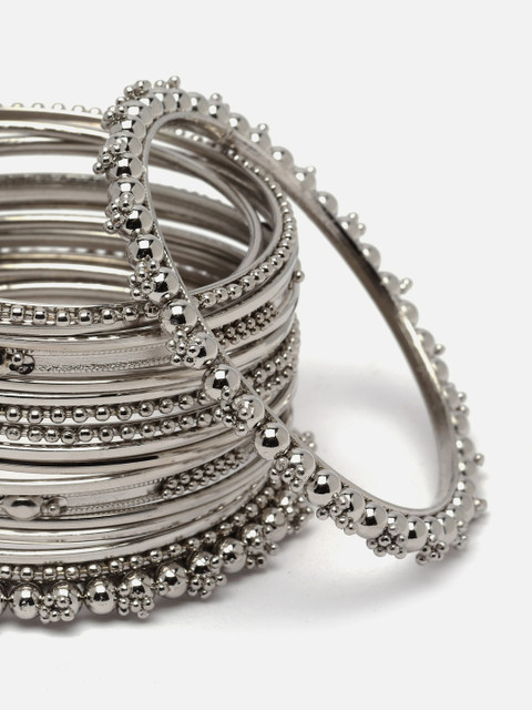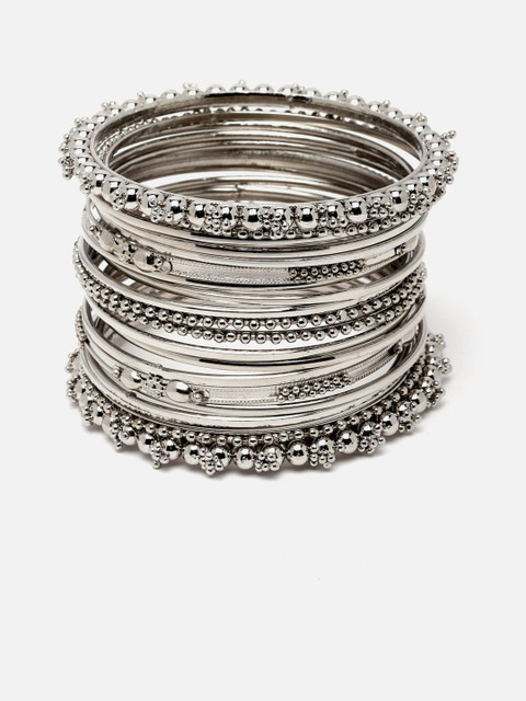 Anouk Set Of 20 Silver-Plated Oxidised Textured Bangles