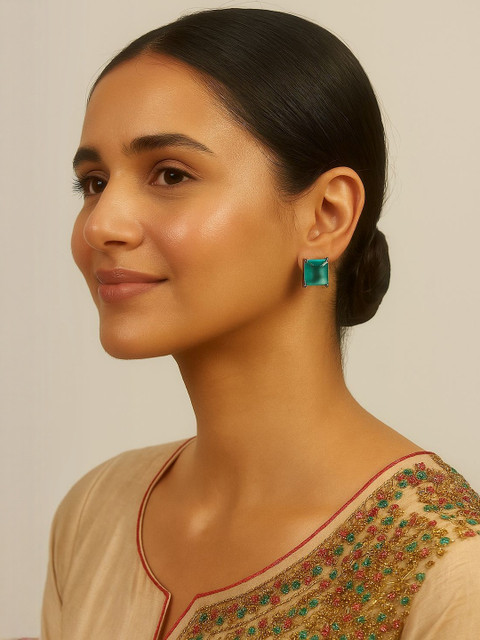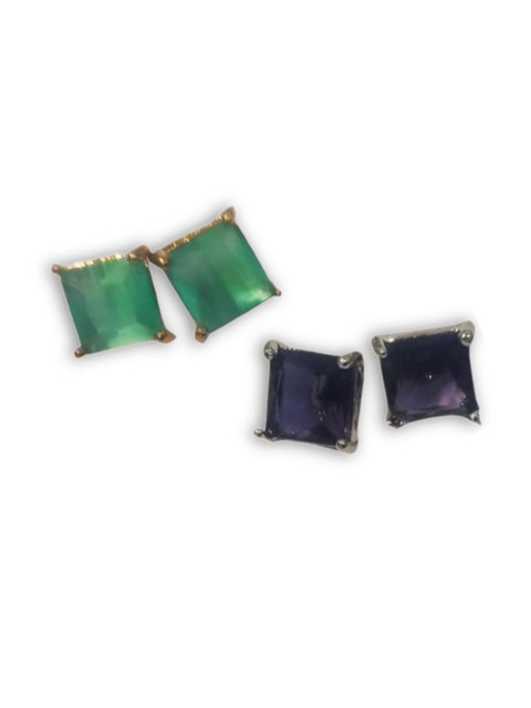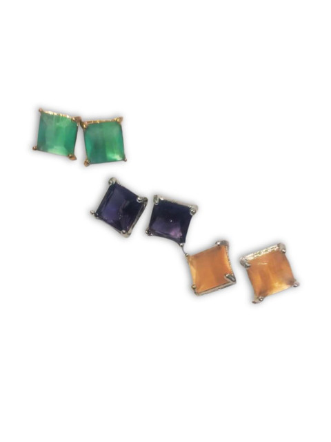 Set of 3 Colored Stone Studded Square Studs Earrings