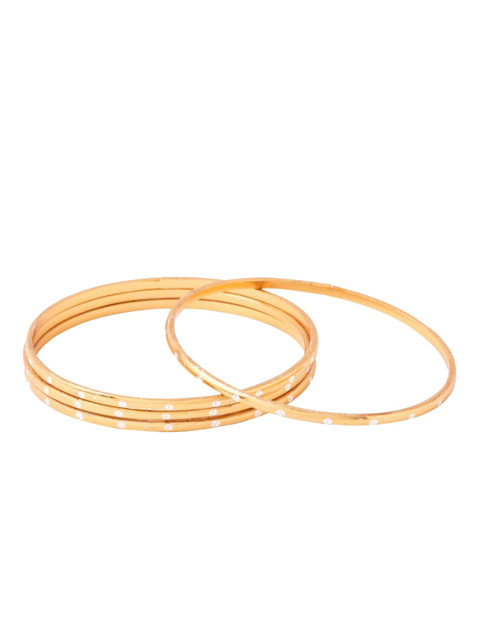 Set of 4 gold-toned white cubic zirconia-studded bangles, has slip-on closure