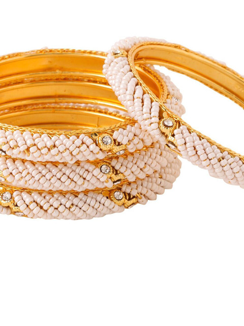 Set of four gold-plated bangles, each has white pearl-studded details