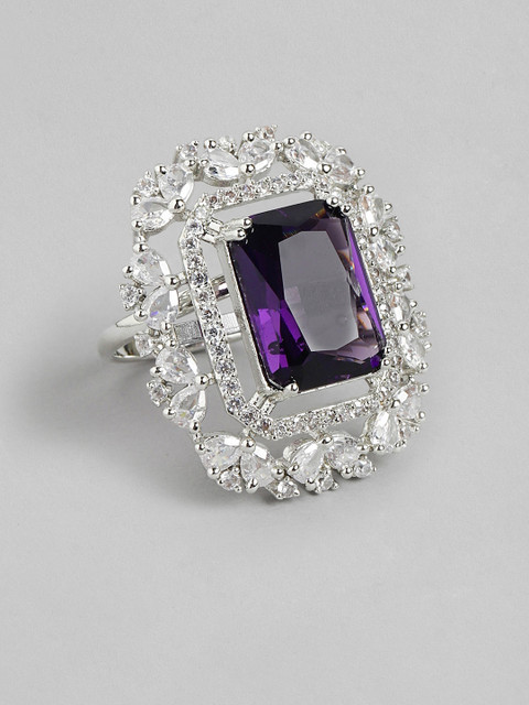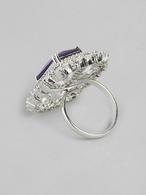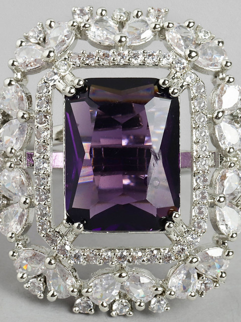 Silver-plated adjustable finger ring, has american diamond-studded and crystal band details