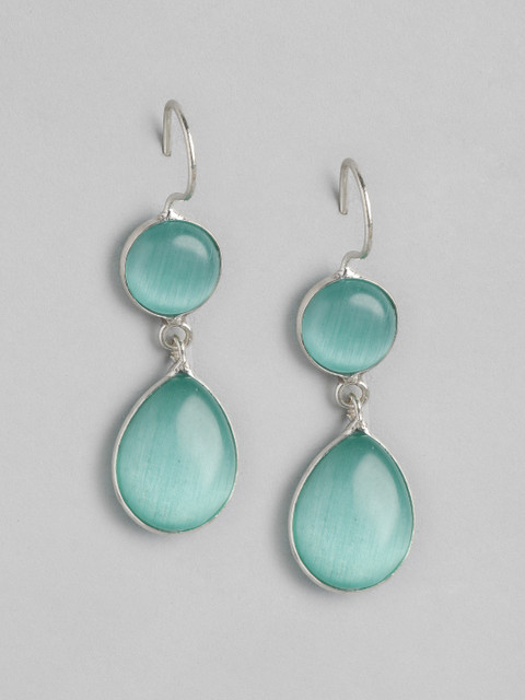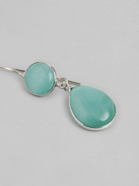 Sea green and silver-toned teardrop shaped drop earrings, silver-plated, has opal