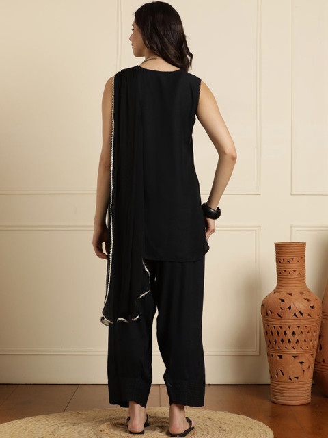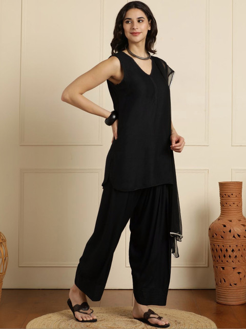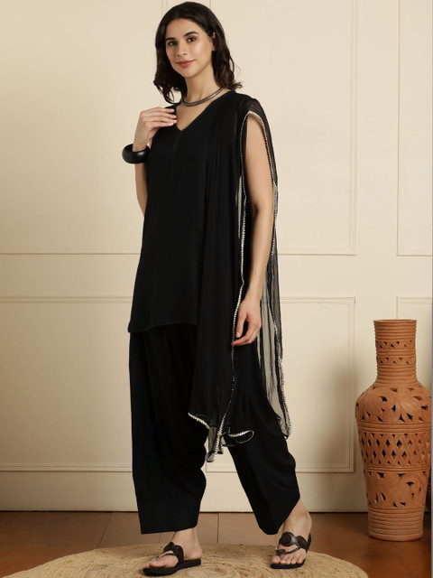 Black solid Kurta with Patiala with dupatta