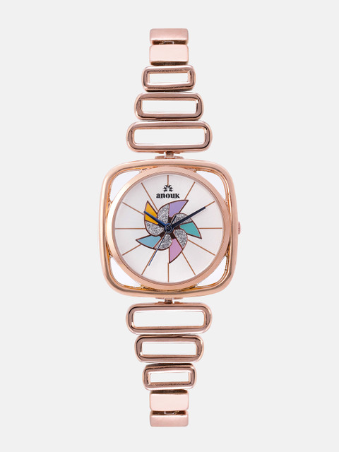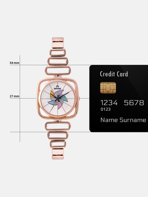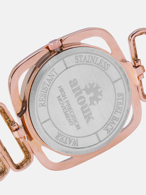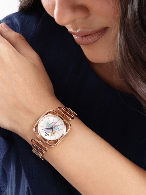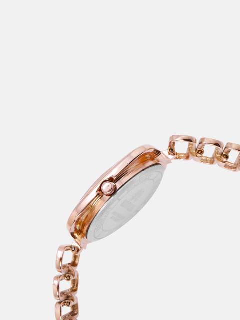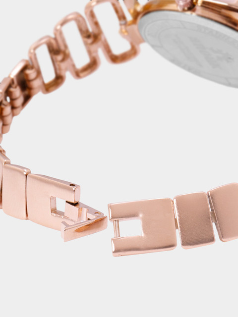 Strap Style: rose gold toned, bracelet style, metal strap with a foldover