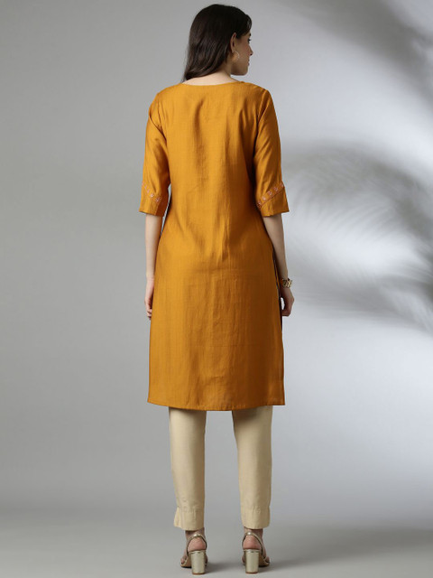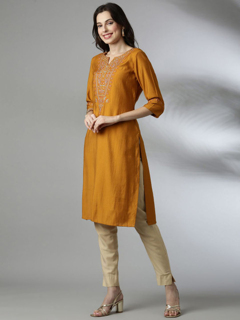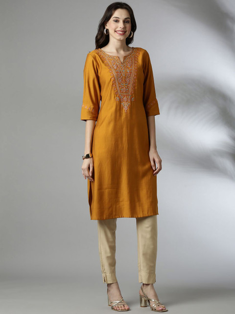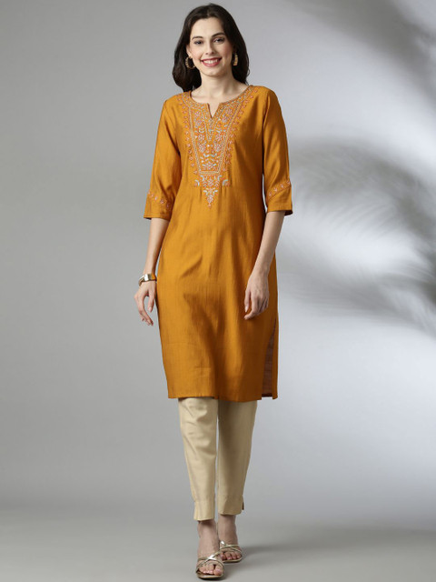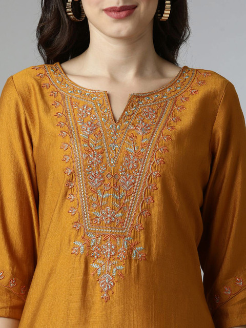 I bought this Anouk Floral Yoke Design Notch Neck Thread Work Straight Kurta for my wife, and she absolutely loved it! The design is elegant and feminine, with beautiful thread work and floral detailing that looks even better in person. The fabric feels soft and comfortable, perfect for both everyday wear and small festive occasions.