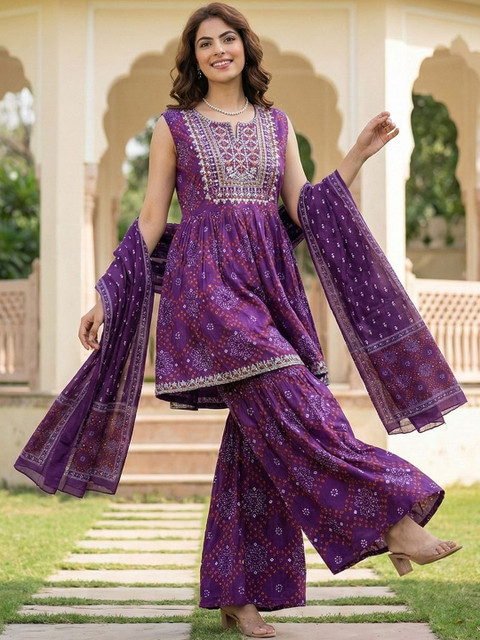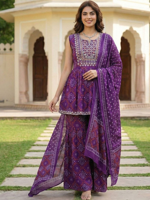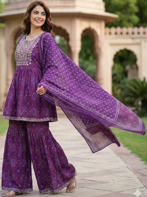 Purple printed Kurta with Sharara with dupatta